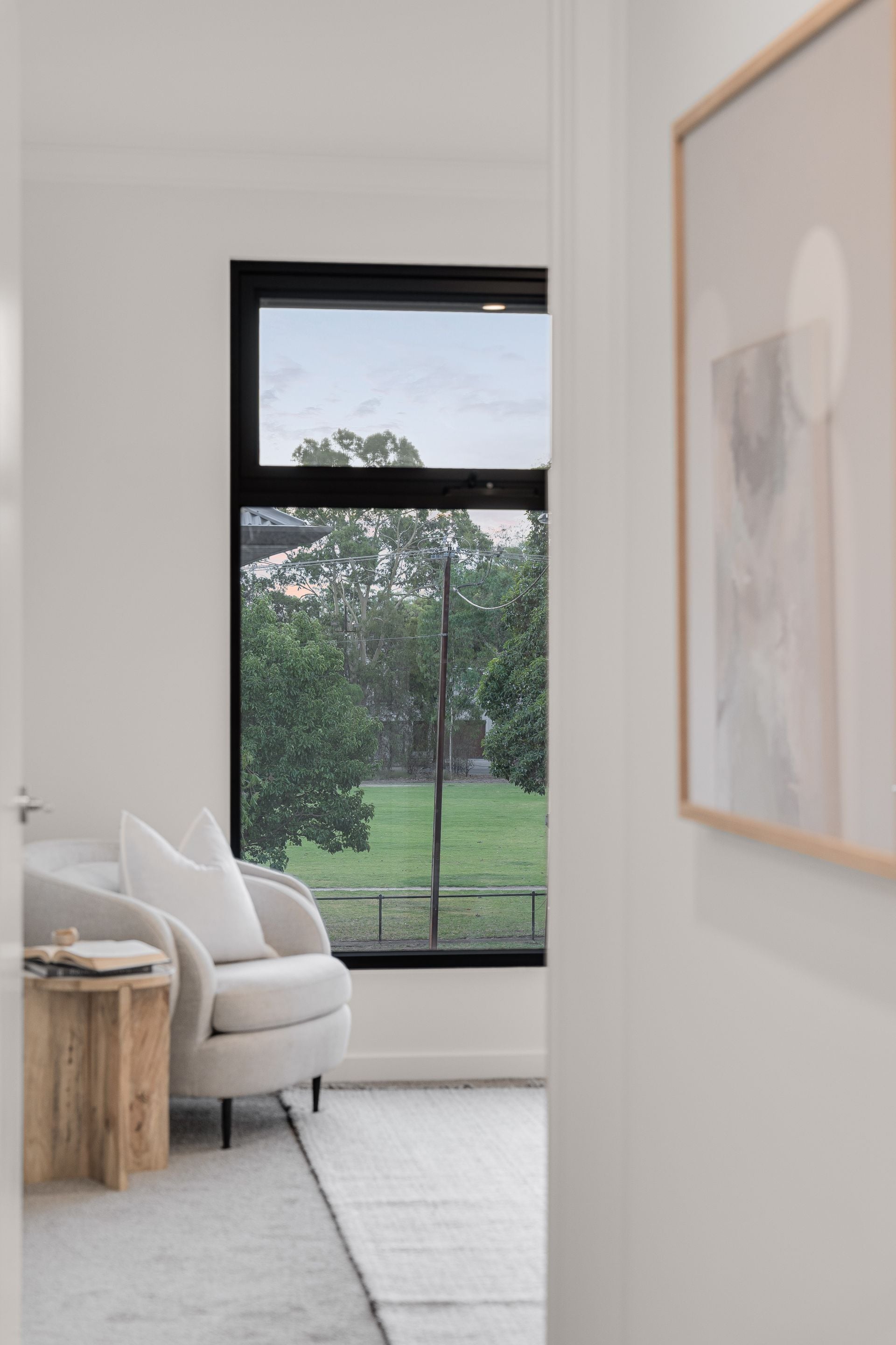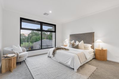 Upstairs, the accommodation is intelligently zoned for privacy and comfort. The master bedroom features a private ensuite and enjoys a peaceful park outlook across Adey Reserve, while the remaining bedrooms are well proportioned and serviced by a contemporary main bathroom. A spacious second-floor living area offers flexibility as a family retreat, home office, or additional lounge.