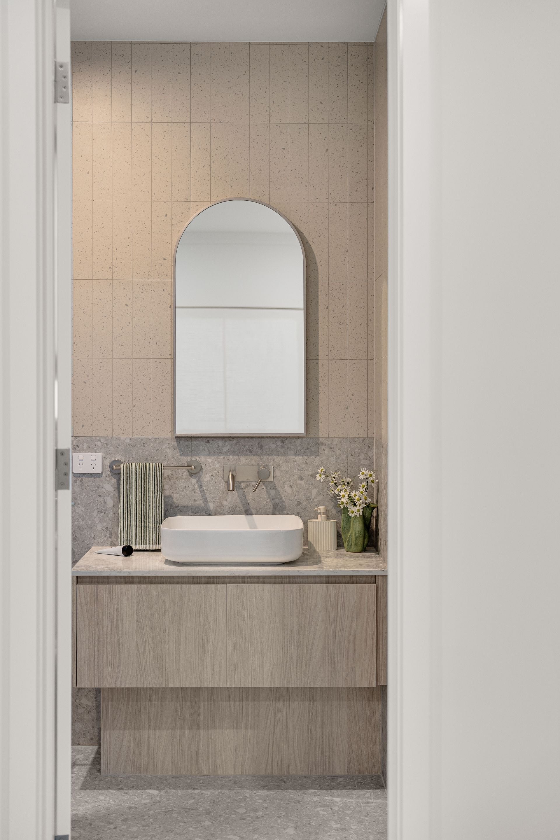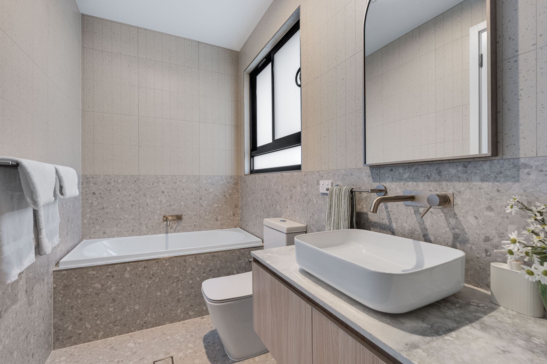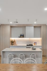 - Contemporary timber-look cabinetry