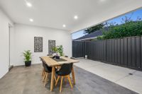 Through the sliding doors, an inviting undercover alfresco area with a landscaping garden extends the living space outdoors. Perfectly positioned to capture natural light, this space offers a seamless transition between indoor and outdoor living, ideal for year-round enjoyment.