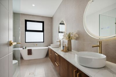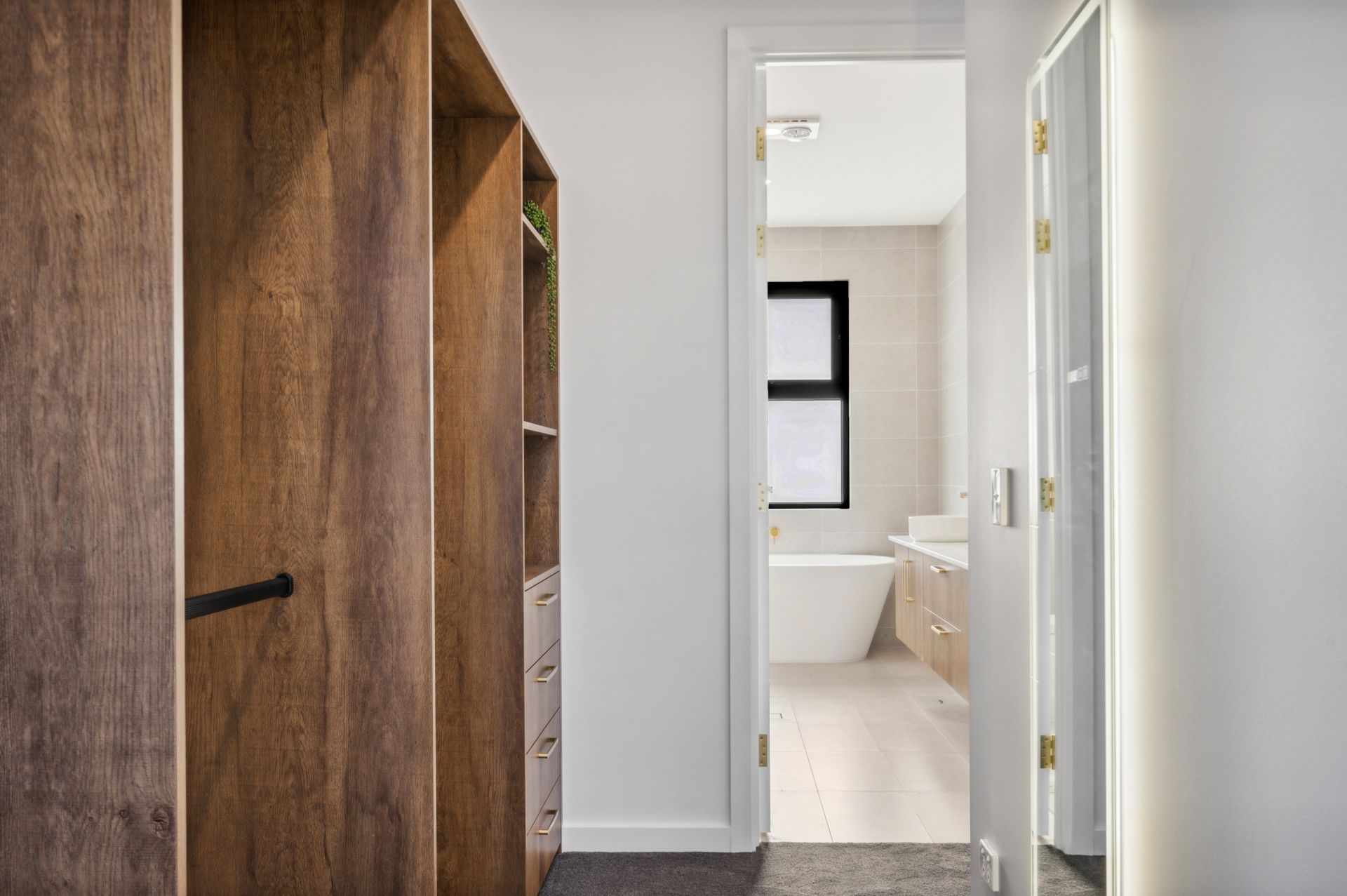 Ascend the staircase beneath an elegant Ison pendant light and arrive at the upper level, where comfort and style await. Four generously sized bedrooms, each carefully crafted to offer a serene retreat, provide the perfect sanctuary for rest and relaxation. The master suite, a true highlight of the home, exudes sophistication with its spacious layout and luxurious finishes. A walk-in wardrobe with a full-length LED mirror ensures both practicality and glamour, while the adjoining ensuite is a haven of indulgence. Floor-to-ceiling premium tiles, a freestanding bathtub, a stone-topped vanity with double basins, LED wall-mounted mirrors, and a frameless shower screen create an opulent atmosphere that invites you to unwind in complete tranquillity.