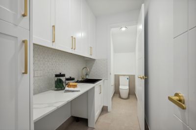 - A separate laundry and powder room, featuring designer tiles, add both style and functionality to the home.