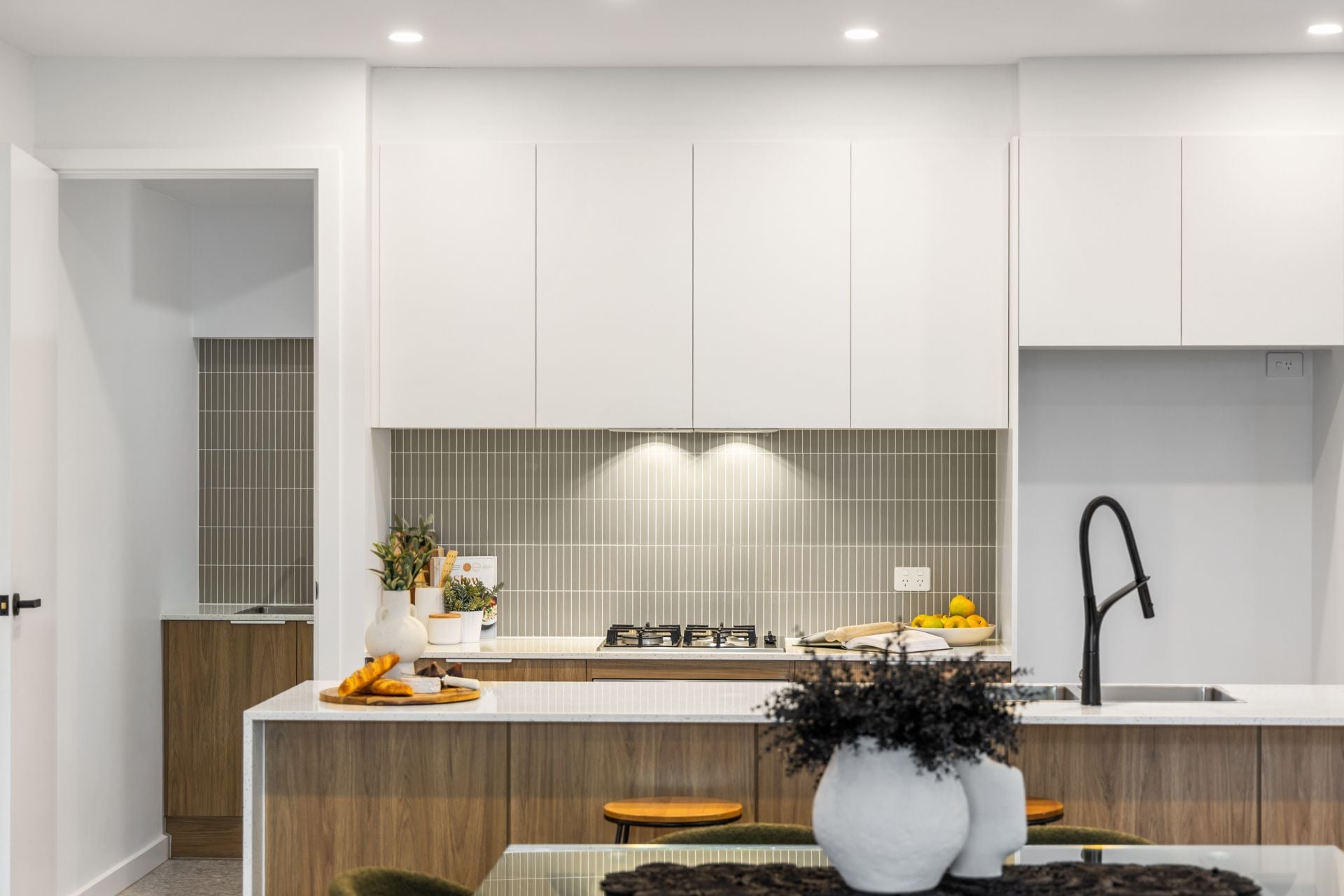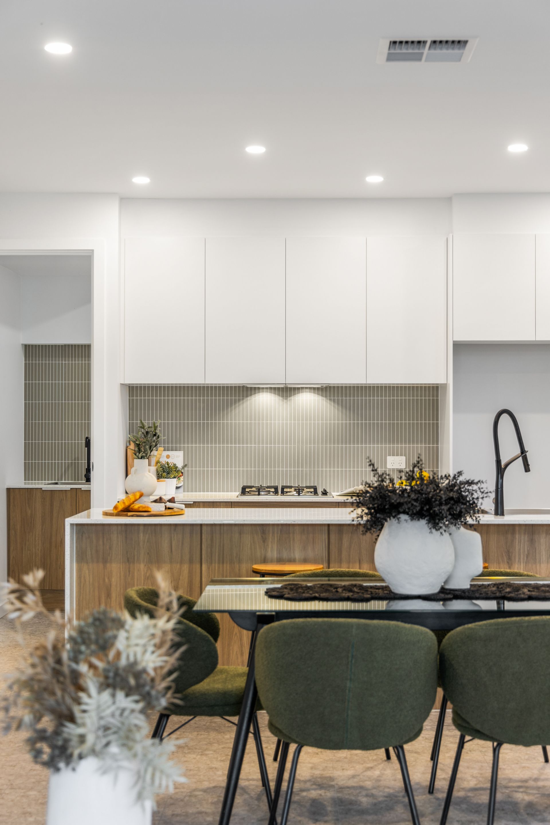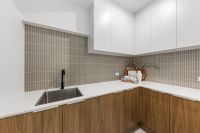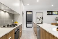 - Gourmet kitchen with stone benchtops, timber-look finishes, BOSCH appliances & a butler's pantry