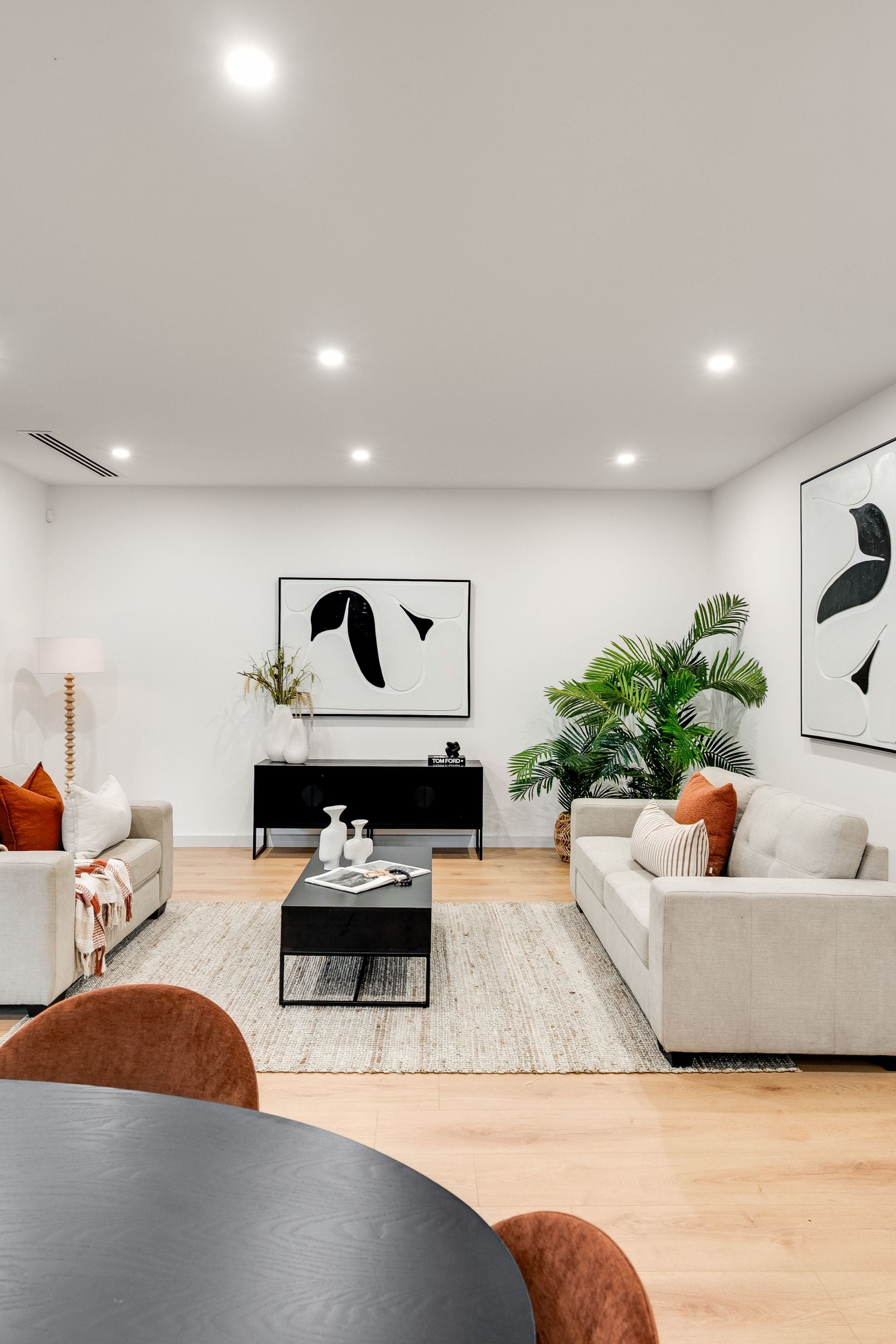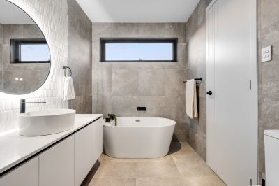 Accommodation is equally impressive, with four spacious bedrooms including a luxurious master suite. The ensuite and main bathroom are finished to a high standard, featuring full height tiling with feature walls, stone top vanities, LED mirrors, semi frameless shower screens and quality basins.