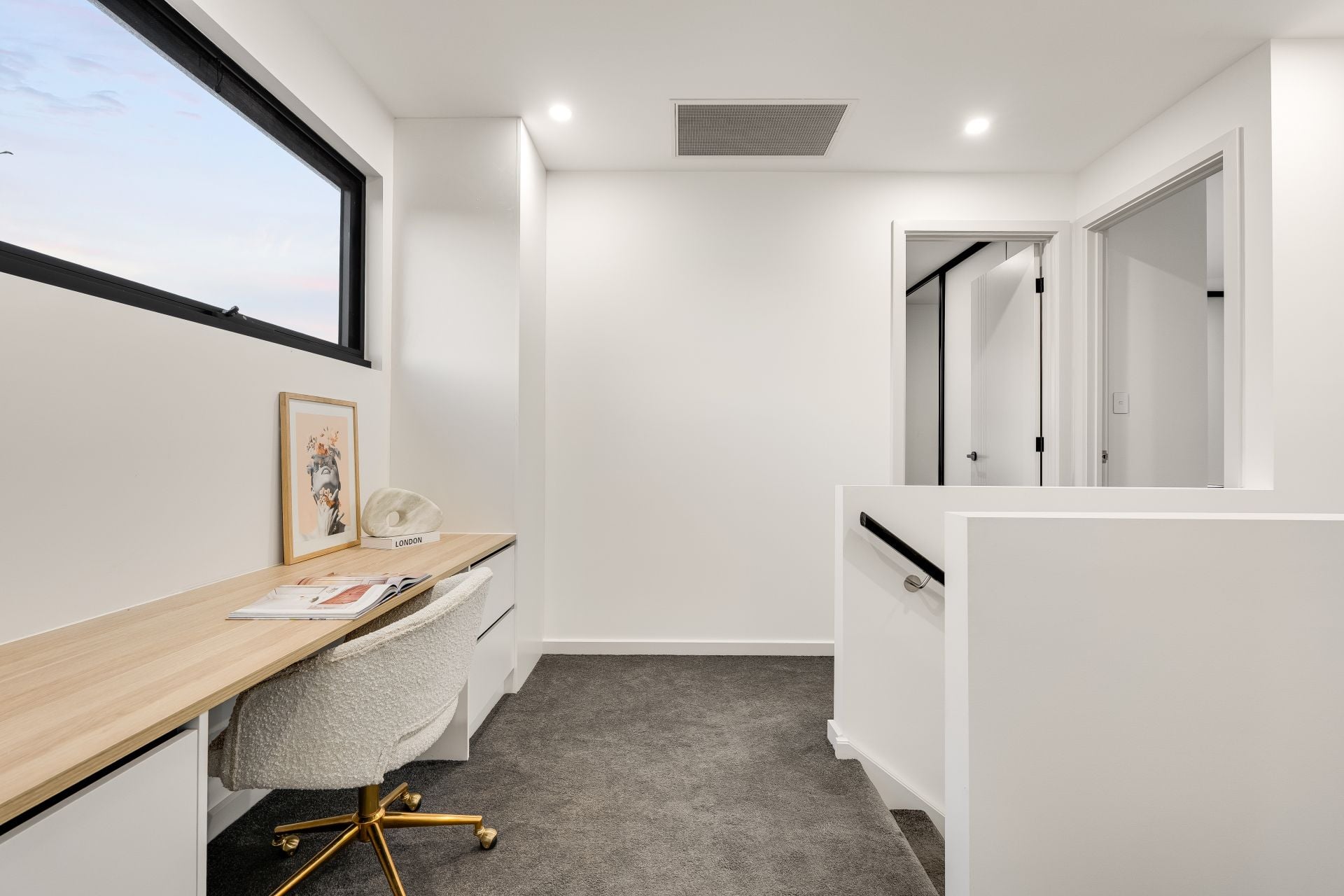 • Built in study nook upstairs ideal for work or study