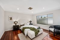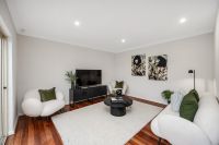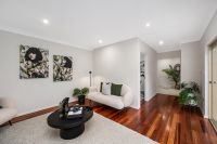 This impeccably designed, large two-storey contemporary family home takes full advantage of its spacious allotment, offering an abundance of living space and modern amenities. The striking rendered facade and private fenced frontage provide both aesthetic appeal and privacy, while the sliding gate ensures easy and secure access to the property. The double garage features a wide automatic panel lift door, making it convenient for everyday use, while the expansive paved parking area at the front allows for additional vehicles or extra space for a potential garden or outdoor setting.