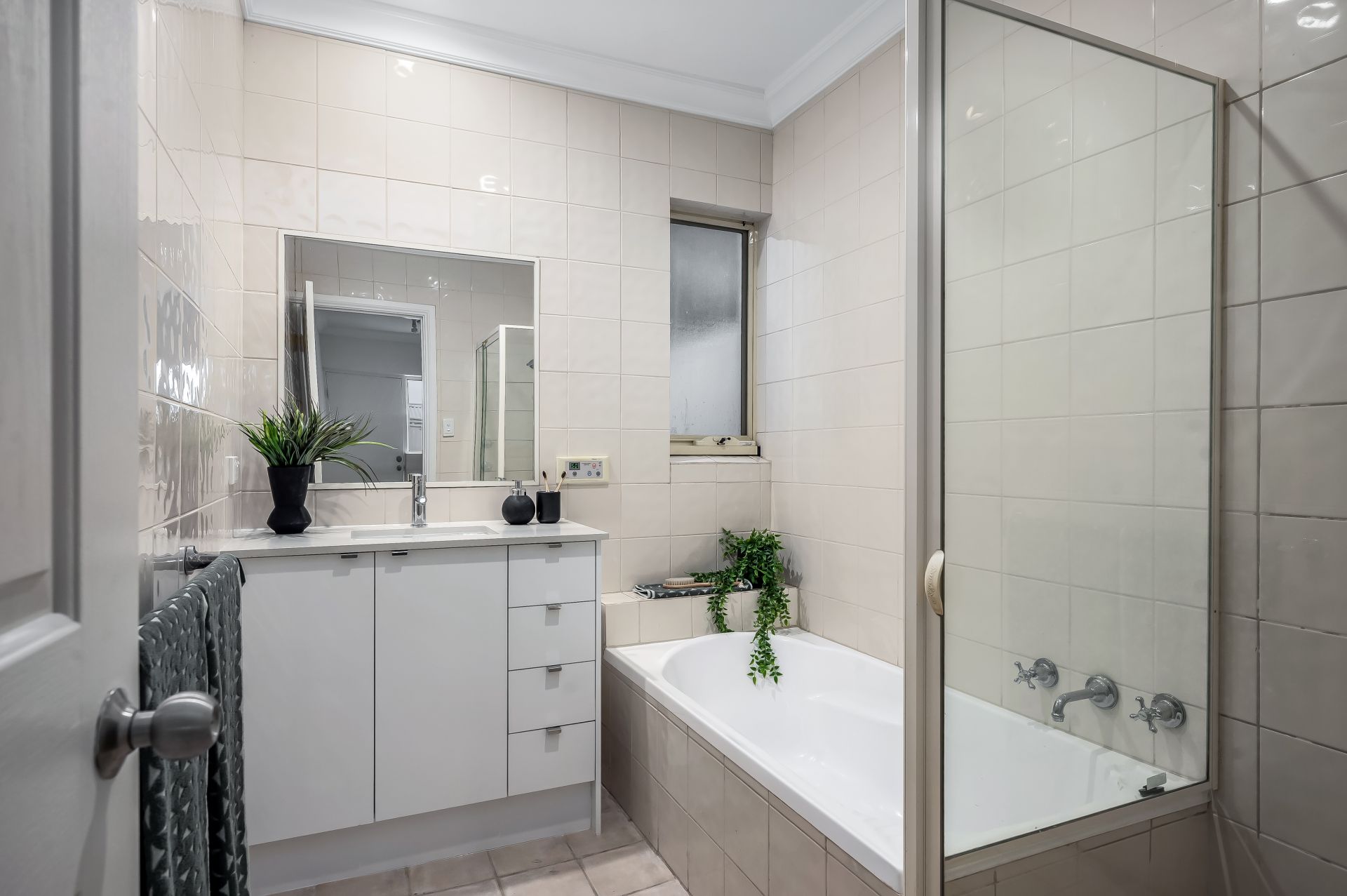 - Laundry room with built-in cupboard and external access to the clothesline