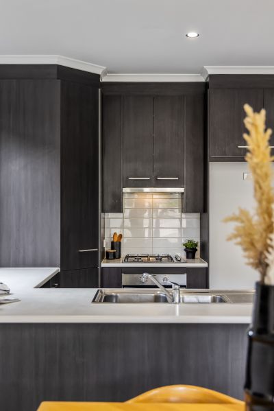The chef's kitchen is the heart of the home - bold, elegant, and built to impress. Enjoy expansive benchtop space, premium stainless steel appliances, gas cooking, dishwasher, and an abundance of storage including a walk-in corner pantry. Perfect for both relaxed family dinners and weekend entertaining.